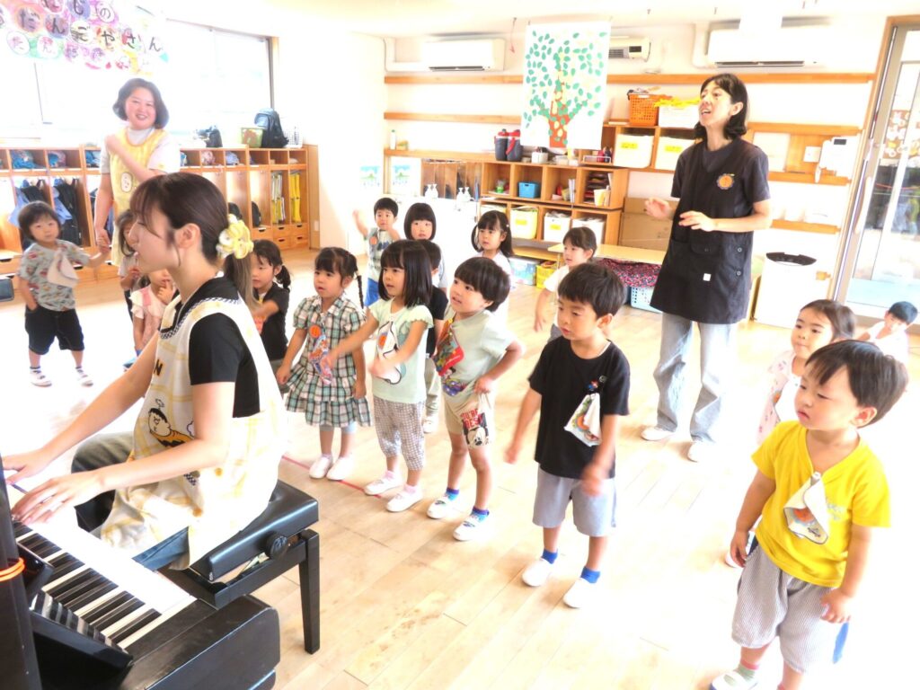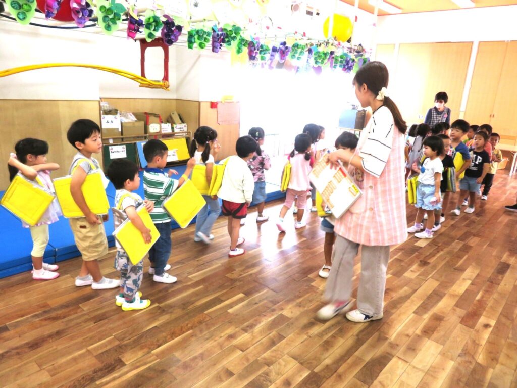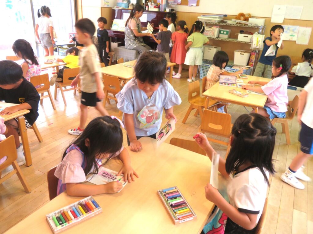 9/29(月)晴れ 2025年9月29日 最終更新日時 : 2025年9月29日 manager ○年少組 どんぐりころころを歌った。○年中組 避難訓練を練習をやった。○年長組 お誕生日会の友達の絵を描いた。