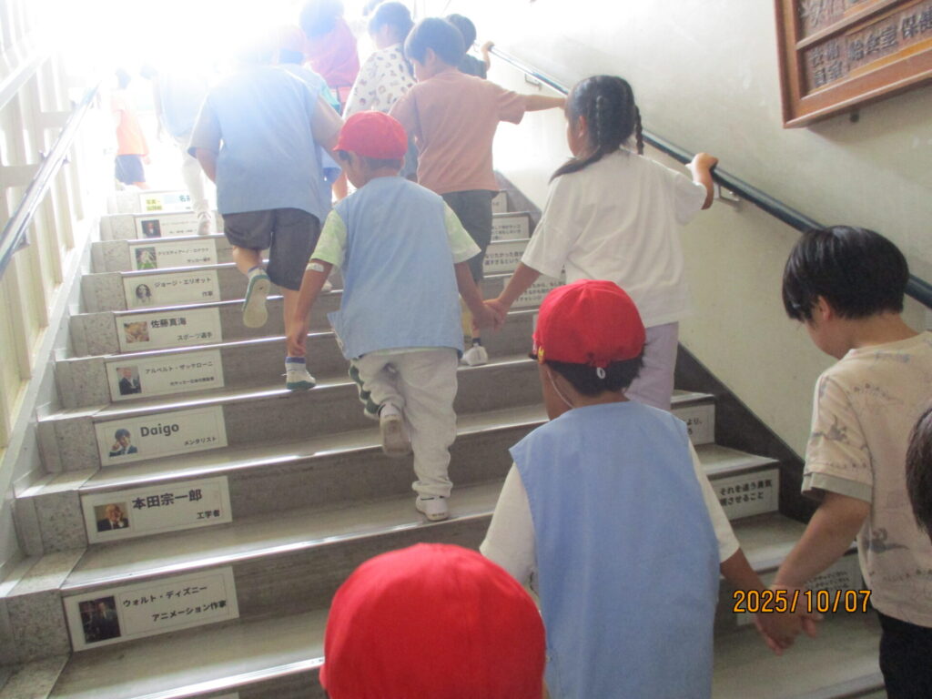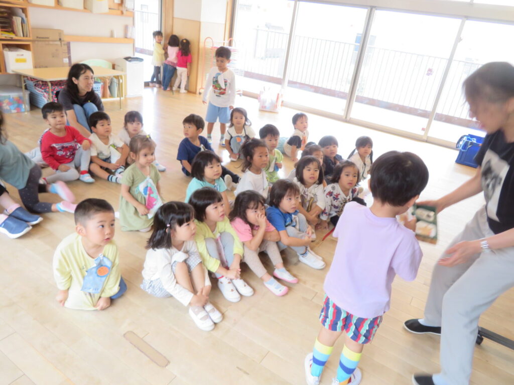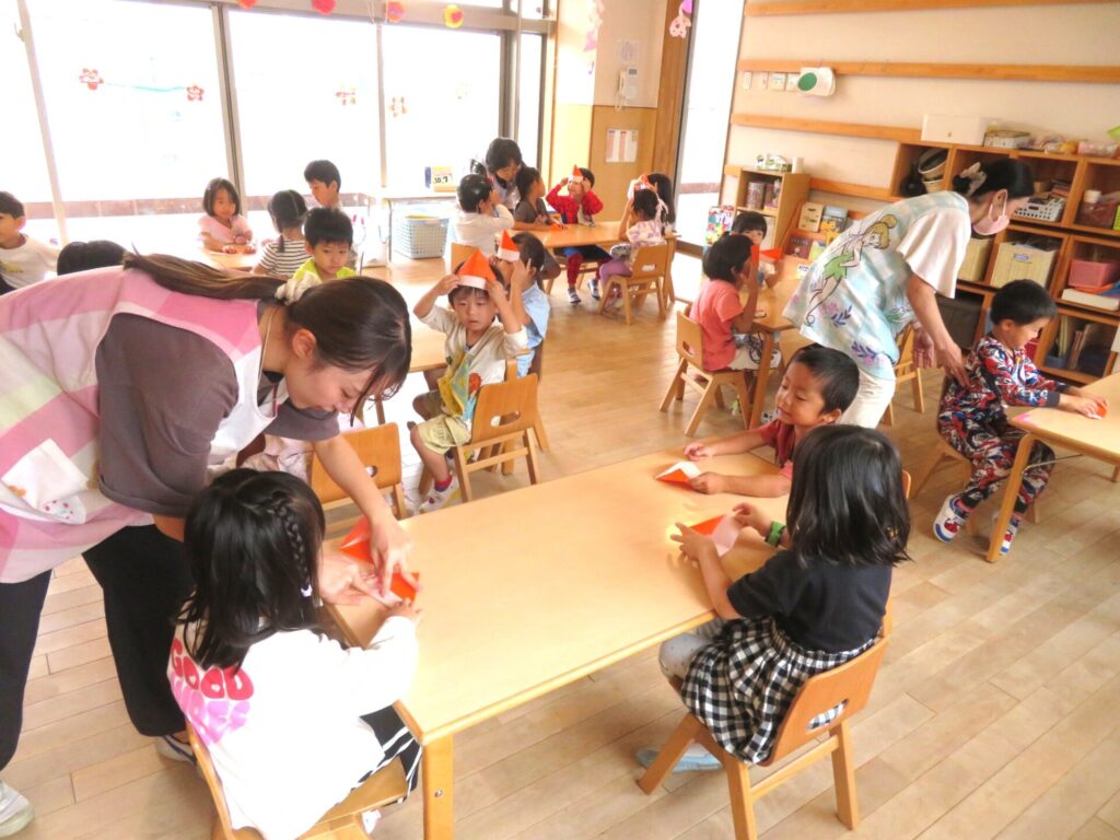 10/7(火)晴れ 2025年10月7日 最終更新日時 : 2025年10月8日 manager ○年少組 Voice 動物リズムをやった。 ○年中組 折紙で秋の果物を折った。 ○年長組 大鳥小学校に行って給食交流会を行った。 ○2歳児プレ幼稚園どんぐり組 おやつを食べた。