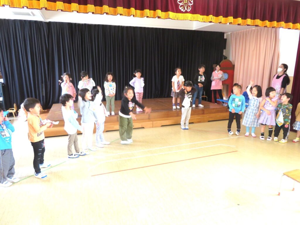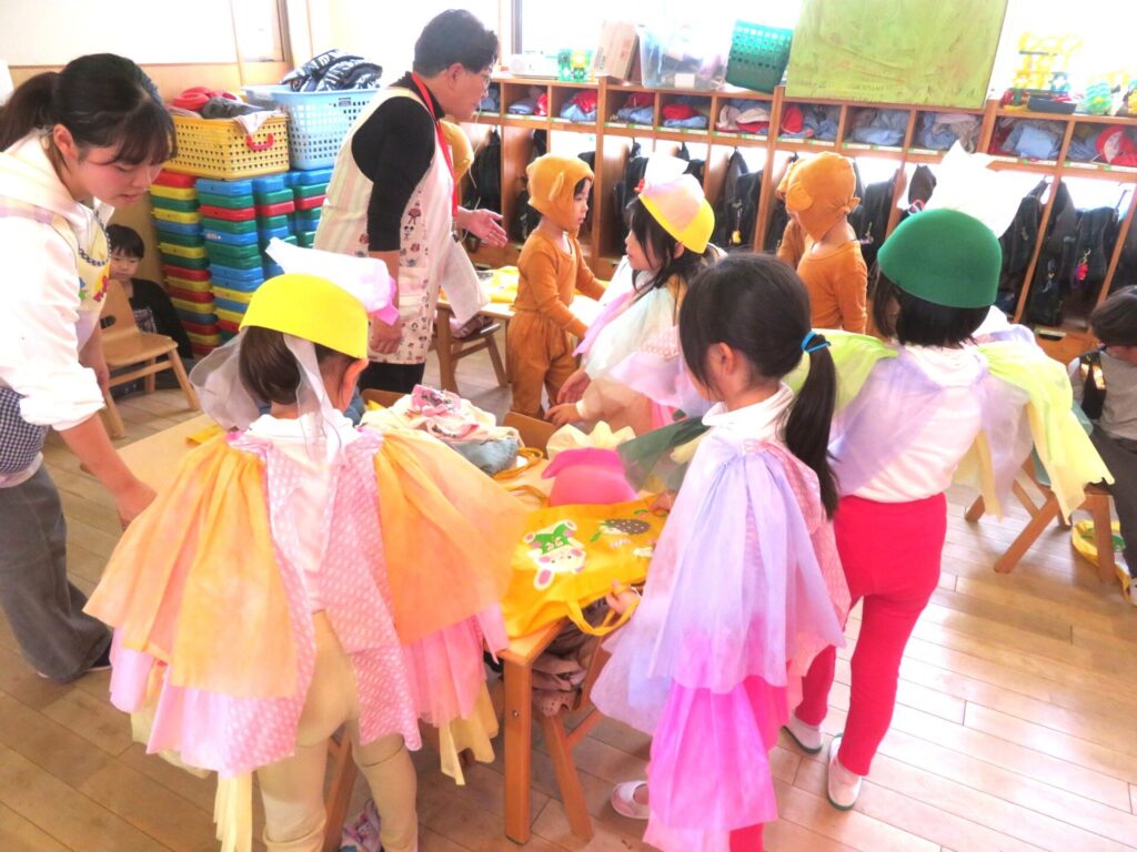 10/27(月)くもり 2025年10月27日 最終更新日時 : 2025年10月27日 manager ○年少組 むっくりくまさんをやった。○年中組 劇遊び発表会の練習をやった。○年長組 衣装を着て劇遊び発表会の練習をやった。
