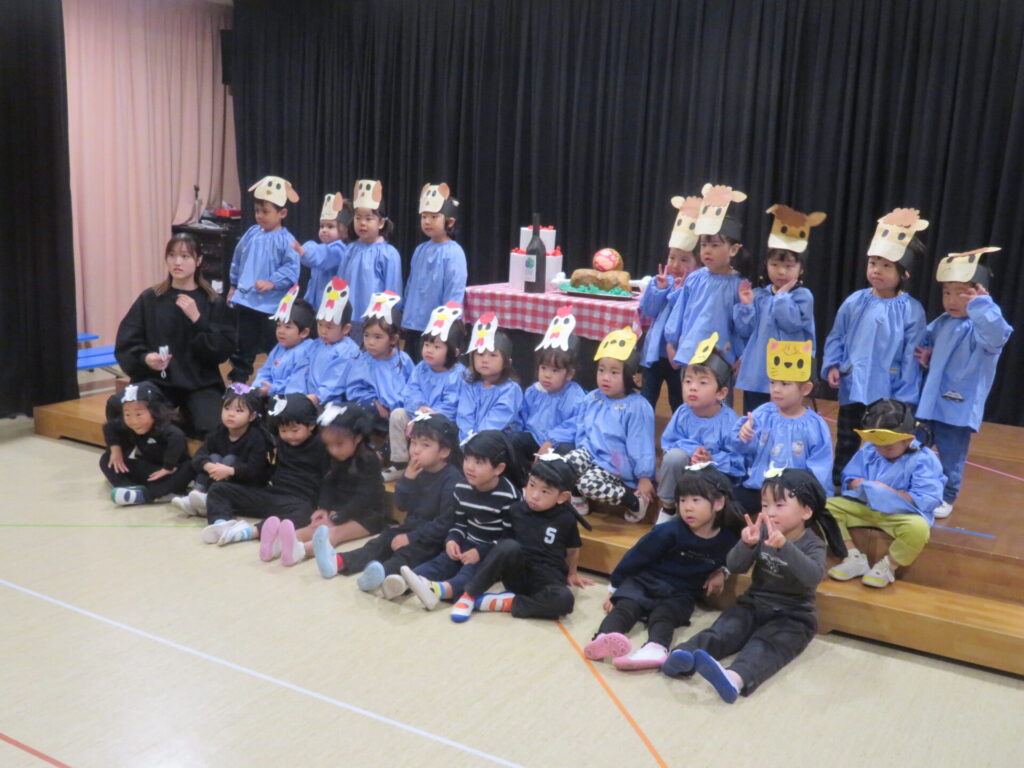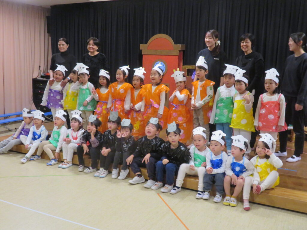 年中さんは「おおかみと七ひきのこやぎ」を一生懸命に演じ、セリフや動きにも成長が感じられました。