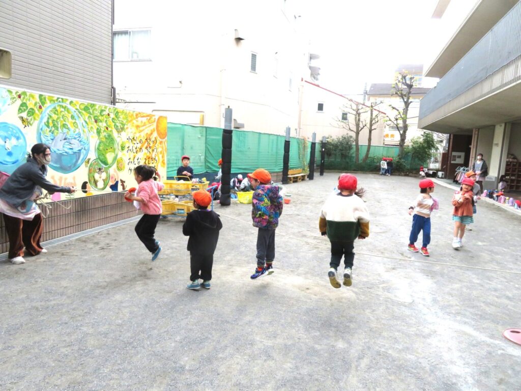 ○年中組 友達と力を合わせて、長なわとびに挑戦しました。