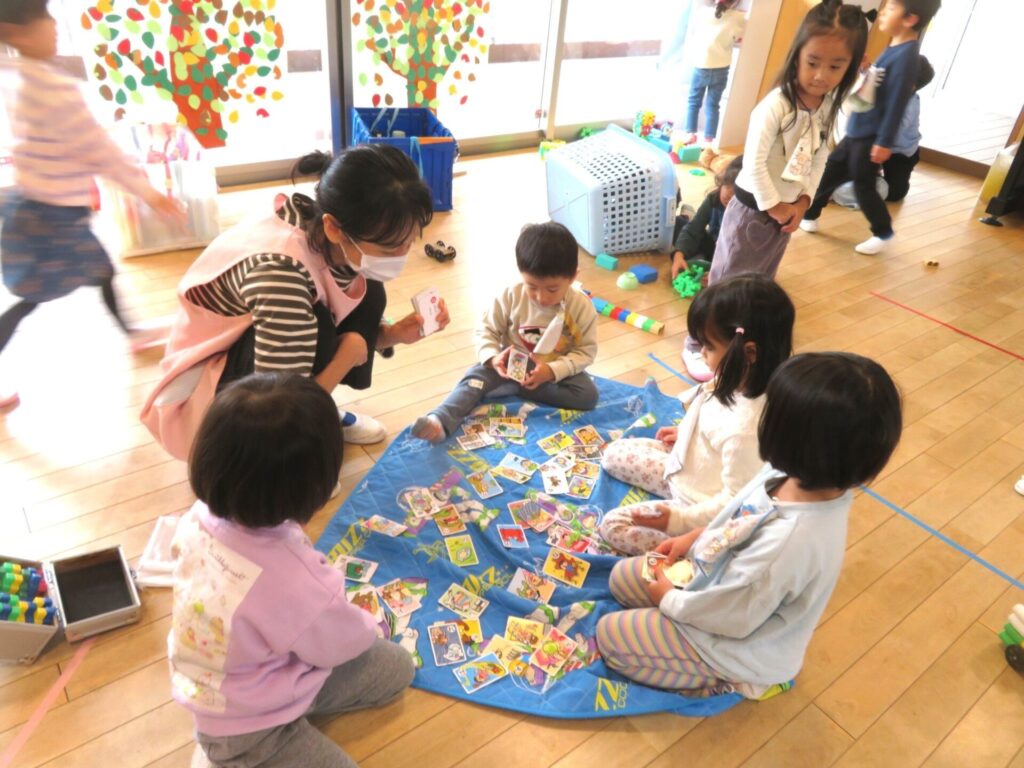 ○年少組 先生や友達と一緒にカルタ遊びを楽しみました。