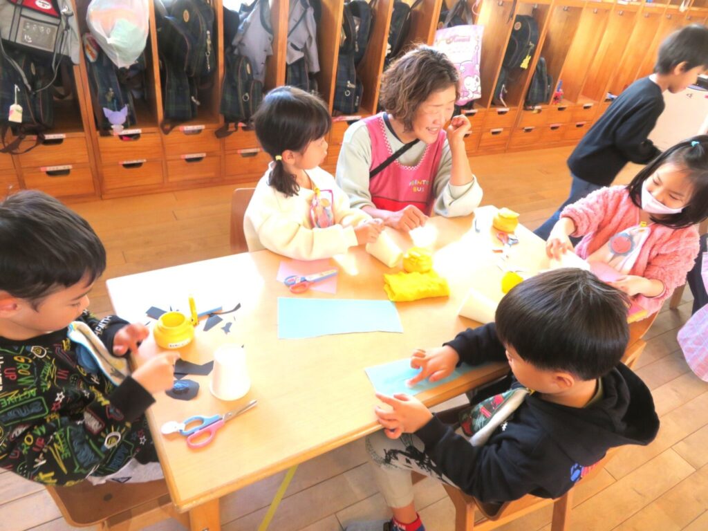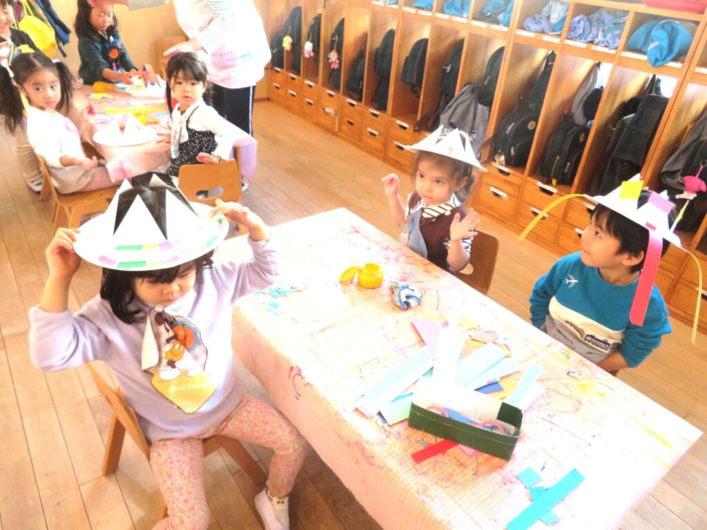○年少組・年中組 カワイ絵画教室体験会 年少組はカラフルな王冠づくりに挑戦し、できあがった王冠をみんなでかぶって楽しみました。年中組は紙コップを使って「ロケットぴょん」を作り、完成したロケットを飛ばして遊びました。