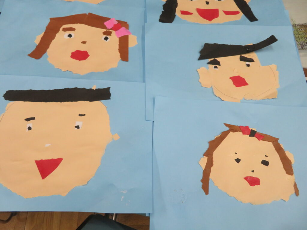 ○ 年長組 ちぎり絵製作に取り組みました。どの作品も子どもたちの個性が光っていました。