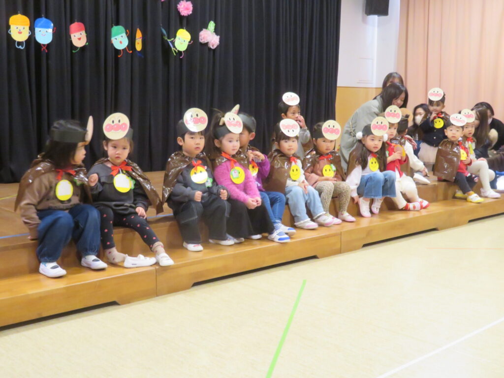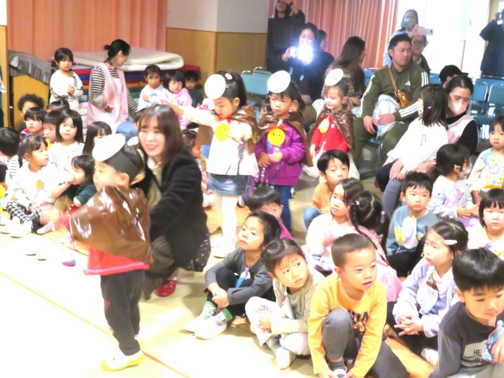 12/9(火)晴れ○ 2歳児プレ幼稚園どんぐり組 合同発表会を行い、「アンパンマン」をみんなで歌ったり踊ったりして楽しみました。年中・年少組の子どもたちも声援を送り、温かい拍手で応援してくれました。