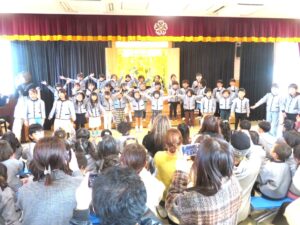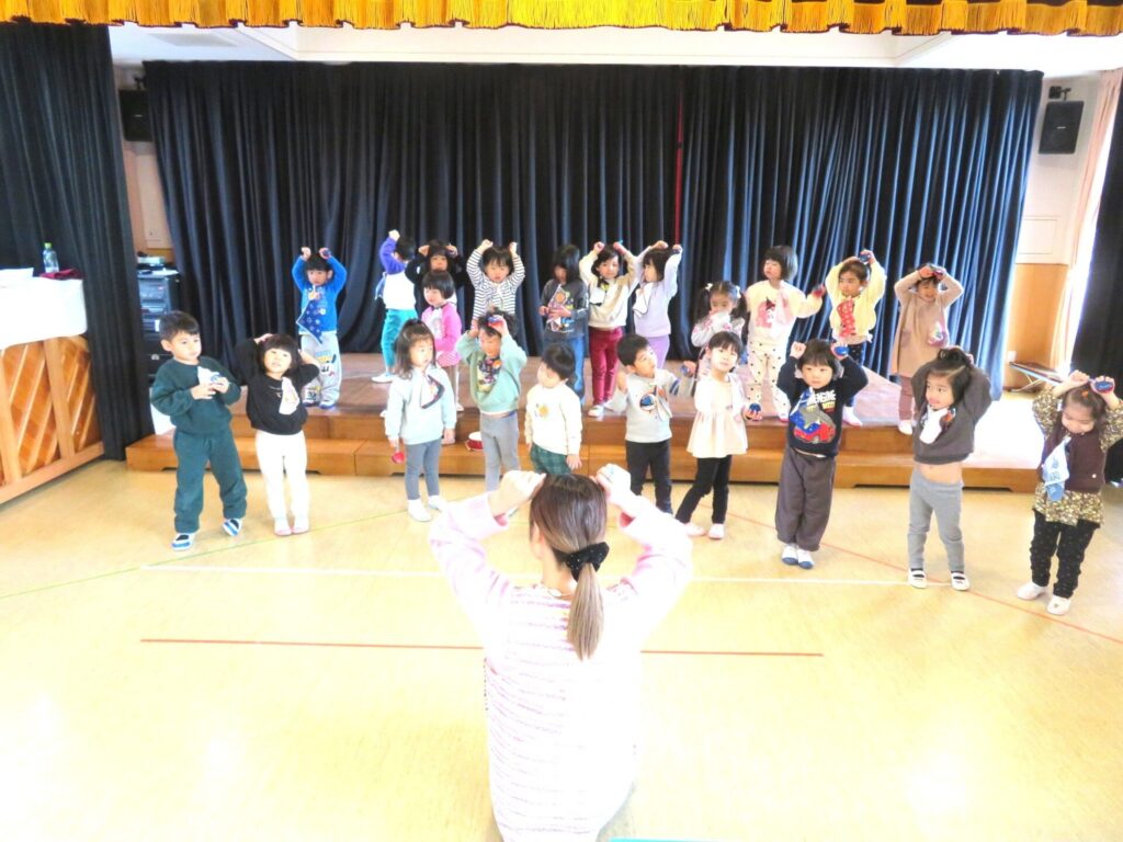 ○音楽教室Voiceの時間 終業式で発表する歌、年少組は「おおきなたいこ」「ドレミの歌」の練習をやりました。