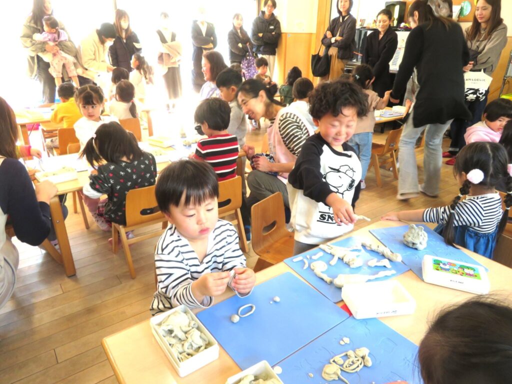 ○年少組 保育参観を行いました。保護者の方に見守られる中、子どもたちは楽しそうに粘土遊びに取り組んでいました。