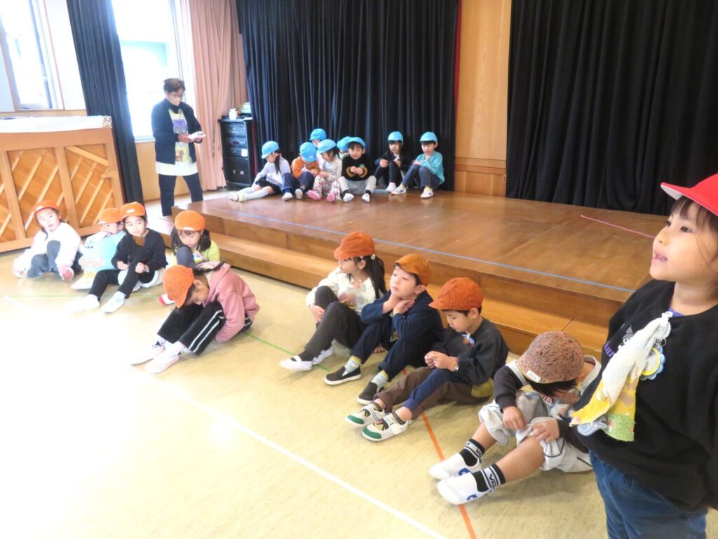 ○年長組卒園公演「月のうさぎ」の舞台練習をしました。シカ役の子どもたちは、気持ちを込めてセリフを言う姿が見られました。