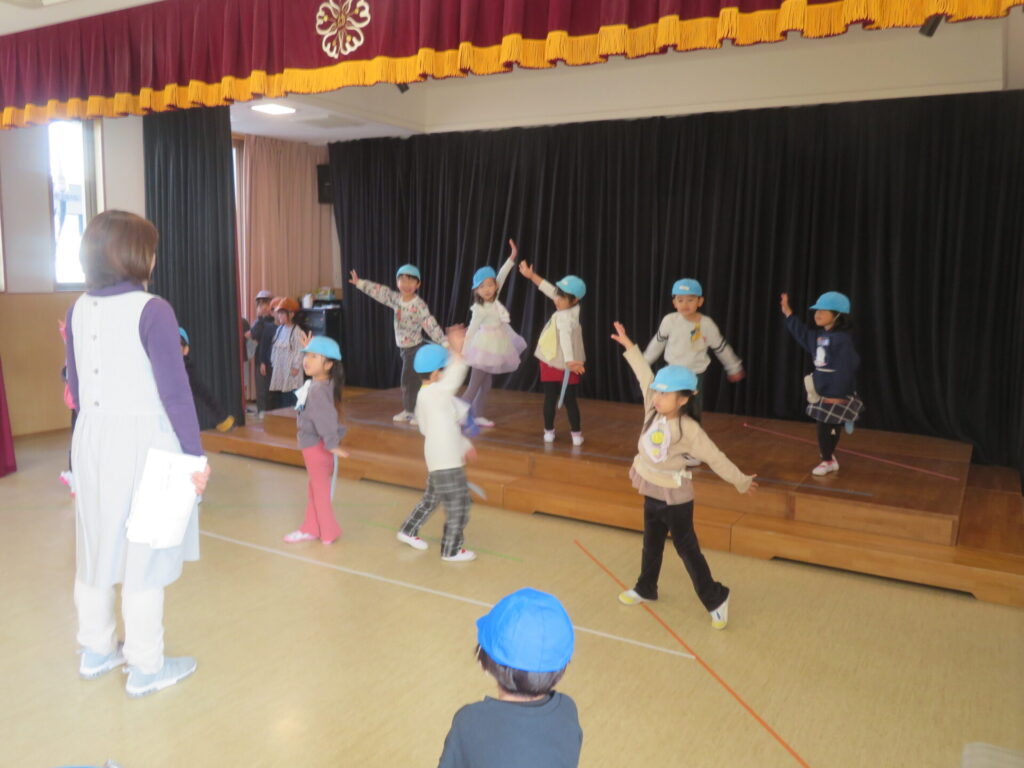 ○年長組卒園公演「月のうさぎ」の練習をしました。動きやせりふを確認しながら、集中して取り組んでいました。