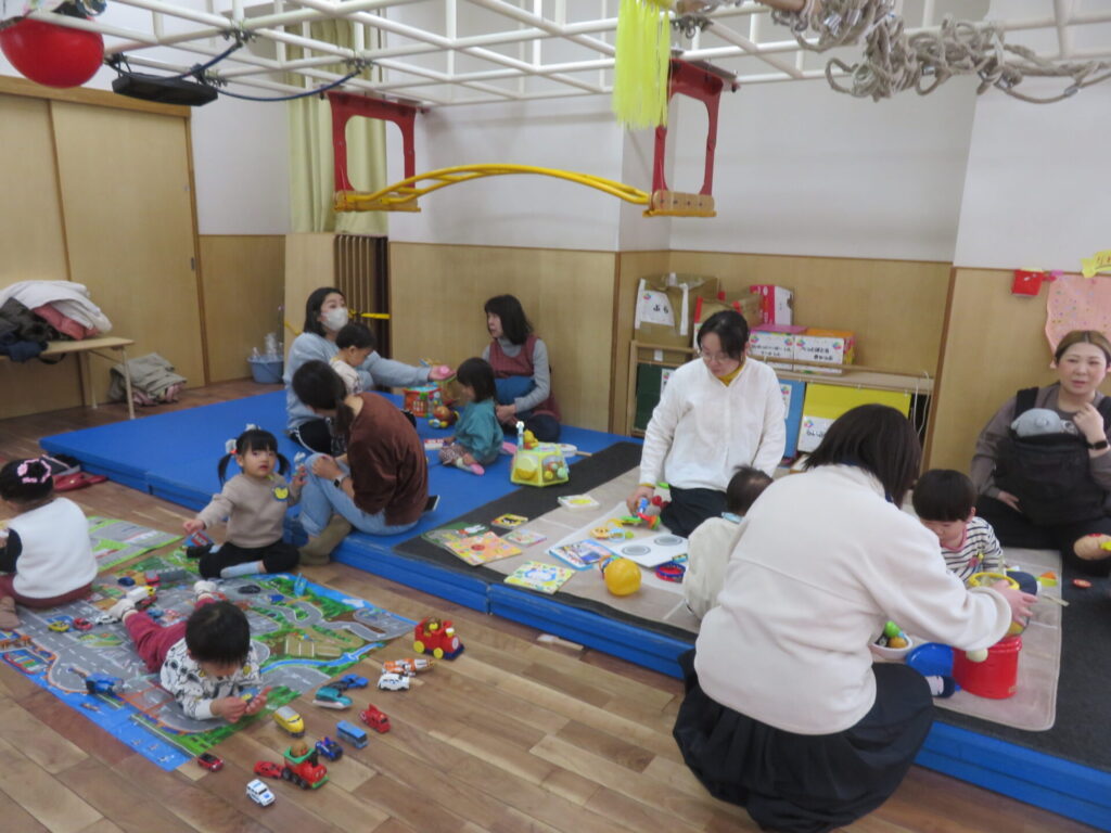 ○未就園児子育てひろば「ぴよぴよ」 おもちゃで遊びながら、親子でゆったりとした時間を過ごした。