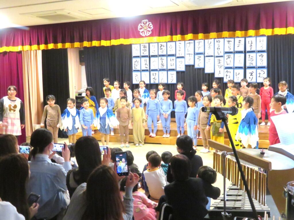 2/6(金) 2026年2月6日 最終更新日時 : 2026年2月6日 manager ○年長組 卒園公演「月のうさぎ」第一日目。先生や友だちと心を通わせ、悩んだり励まし合ったりしながら作り上げてきた劇を、今日、舞台の上で精一杯表現することができました。