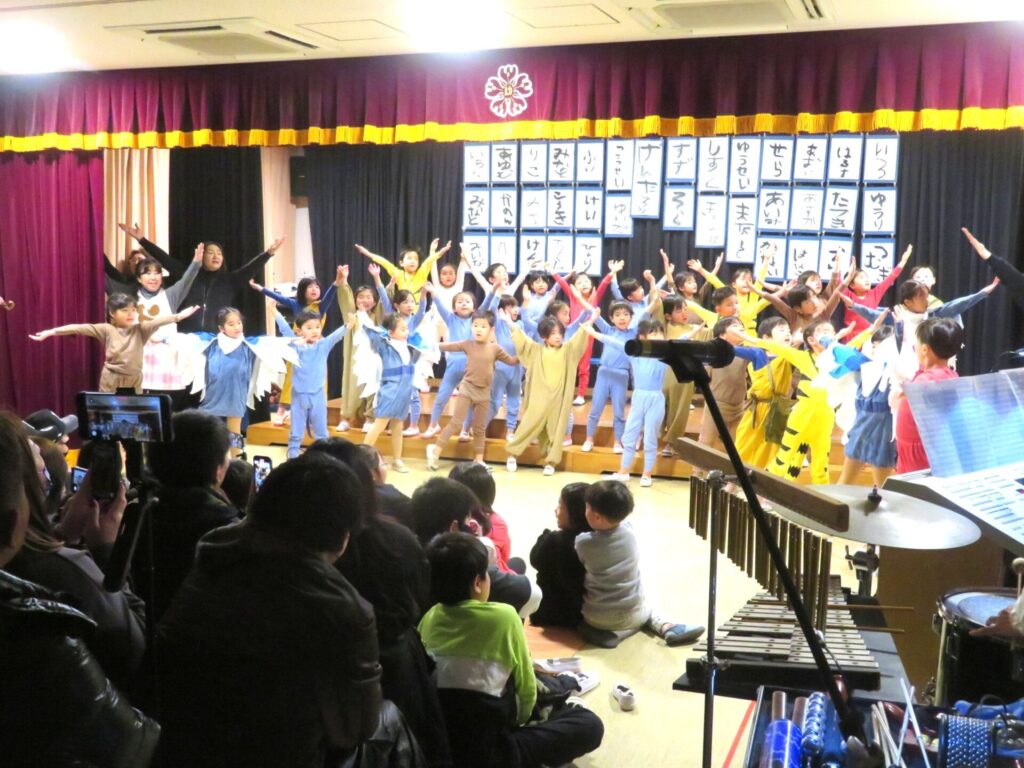 2/7(土)くもり 2026年2月7日 最終更新日時 : 2026年2月7日 manager ○年長組 卒園公演「月のうさぎ」第2日目。四十二年の歴史と伝統を受け継いできた「月のうさぎ」。その長い歩みの一端を、今年の年長組の子どもたちが、仲間と心を一つにして大切につないでくれました。舞台に立つ姿には、これまでの練習の日々や、挑戦する気持ち、友だちと支え合ってきた時間があふれていました。ここまで子どもたちを温かく見守り、励まし、支えてくださったご家族の皆様に、心より感謝申し上げます。