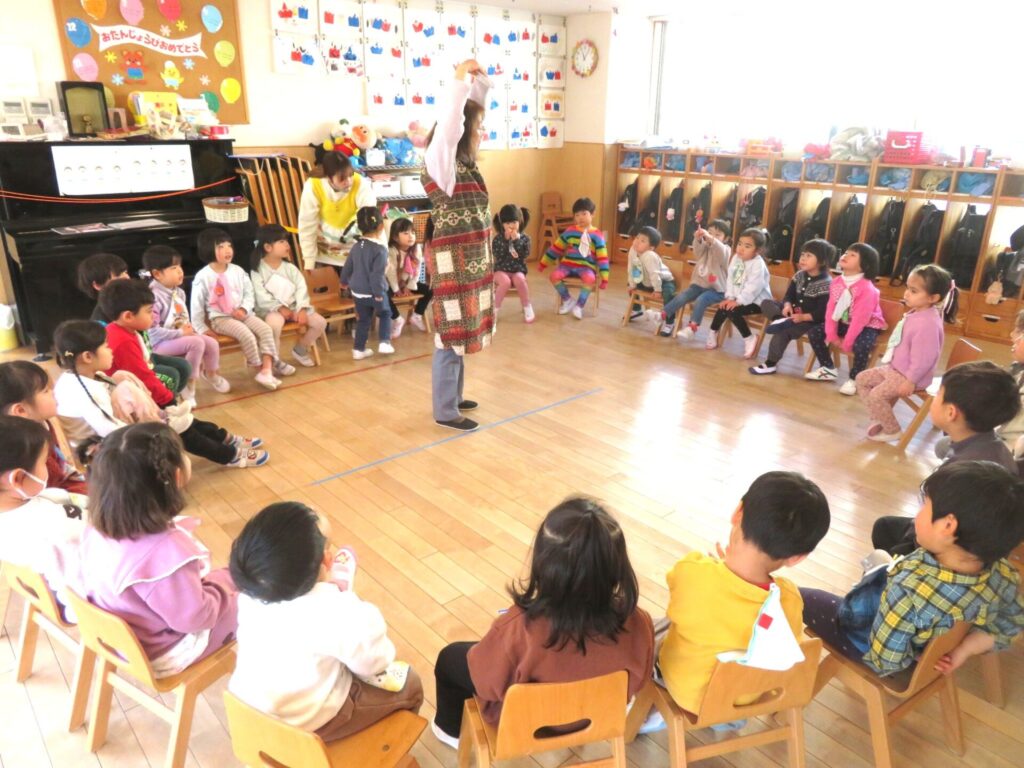 ○年少組 Voice。すずを使って、動物のリズム遊びを楽しんだ。
