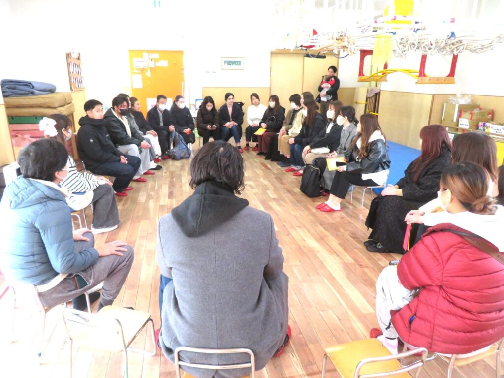 3/11(水)晴れ○年少組 最後の保育参観・懇談会を行いました。参観では、おとうさんやおかあさんへ一言メッセージを発表しました。少し緊張しながらも、日頃の「ありがとう」を伝える姿に成長を感じました。